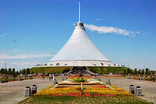 Kazakhstan, terkadang disebut juga Piramida kaca raksasa. Khan Shatyr Entertainment